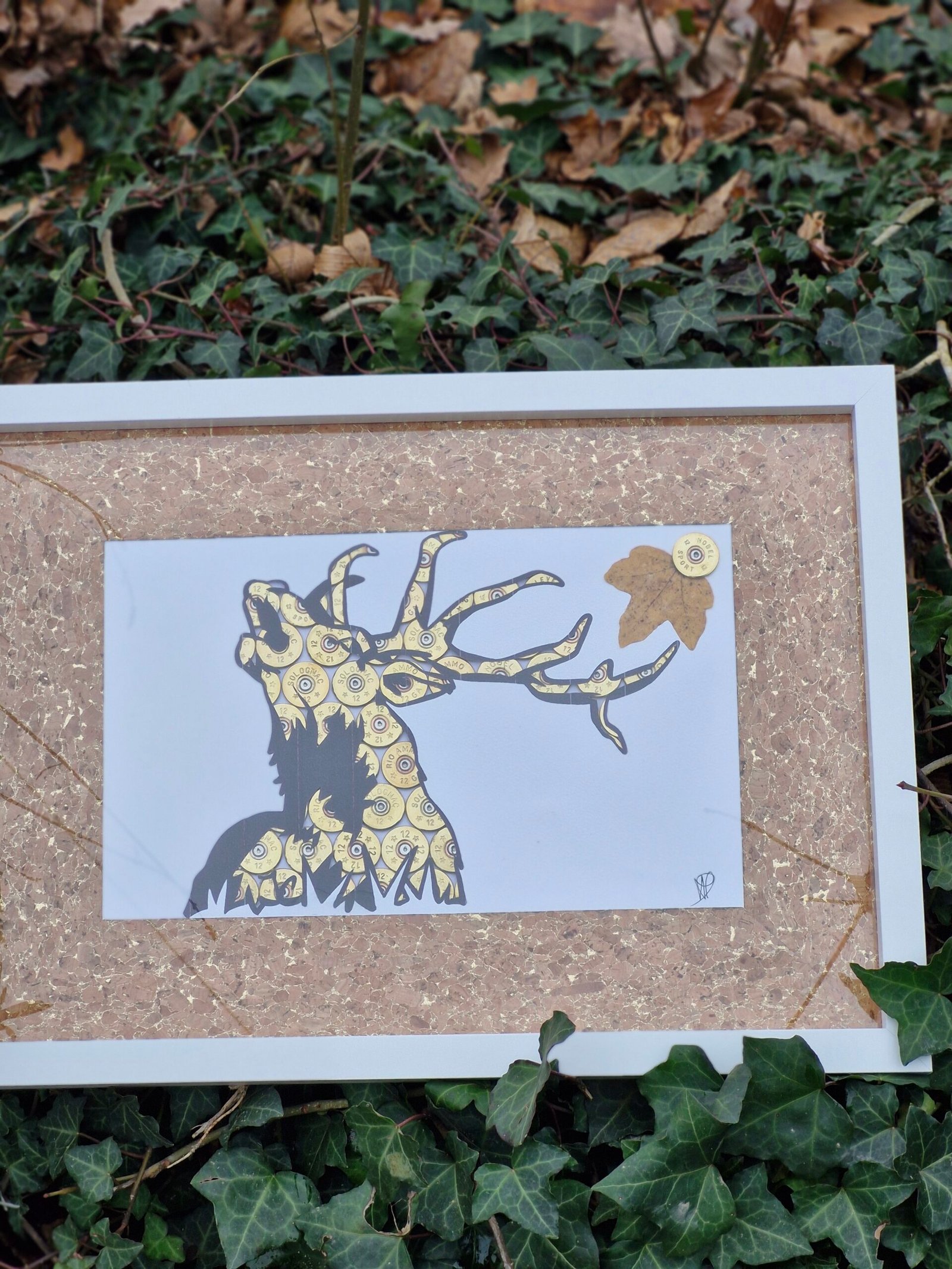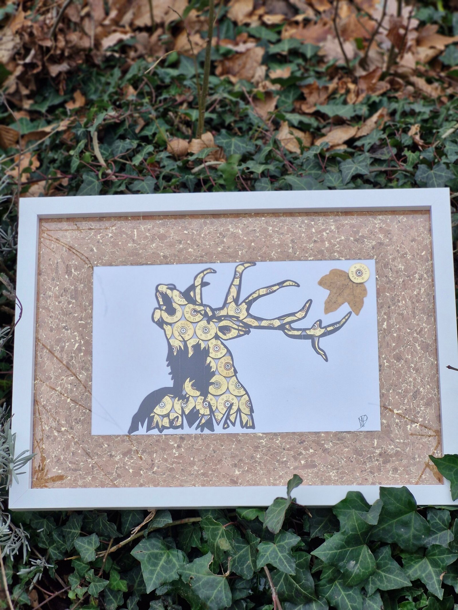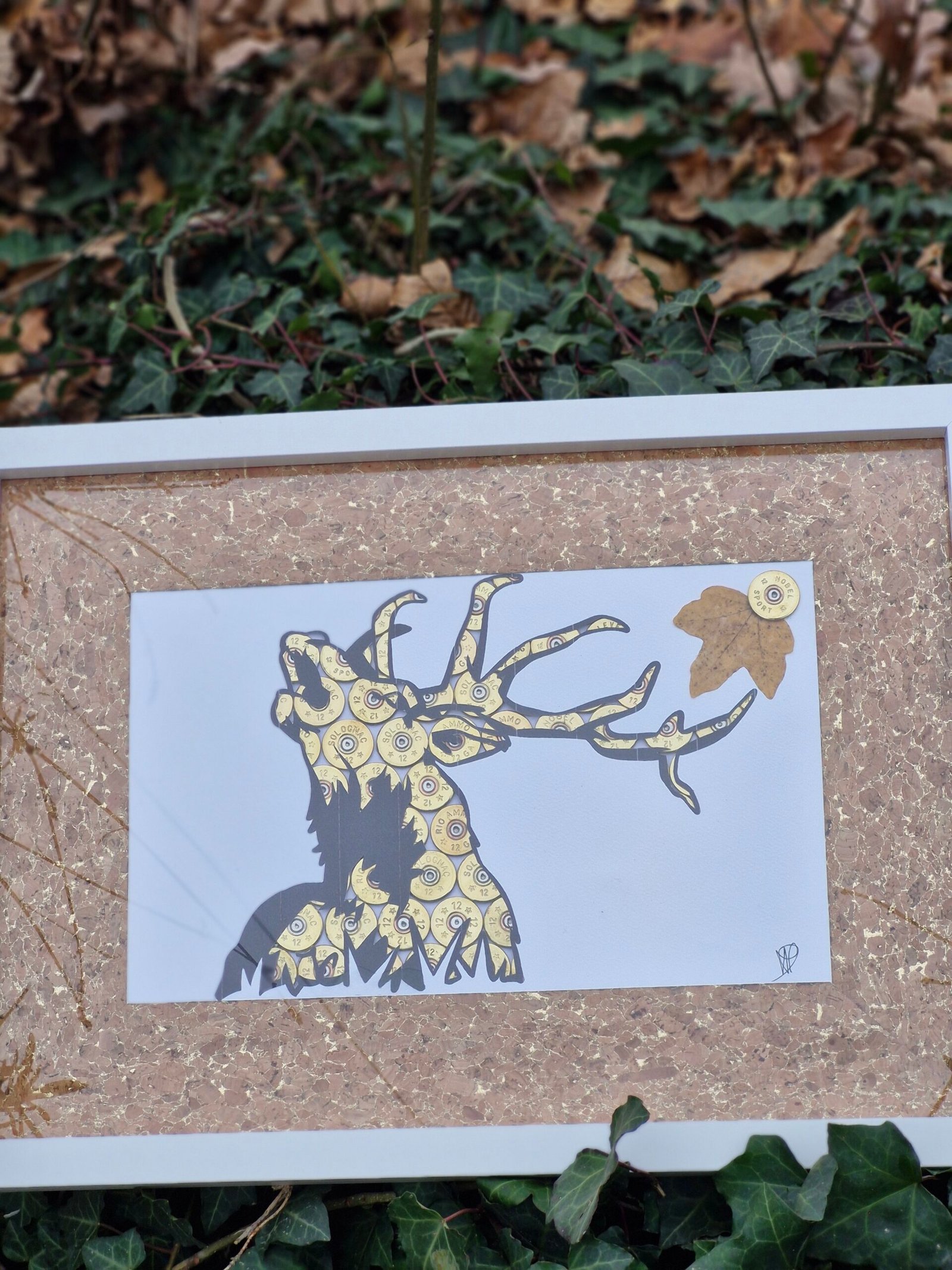Grande cadre de 43 pour 33 cm de taille réalise avec de douille de cartouche de 12mm.