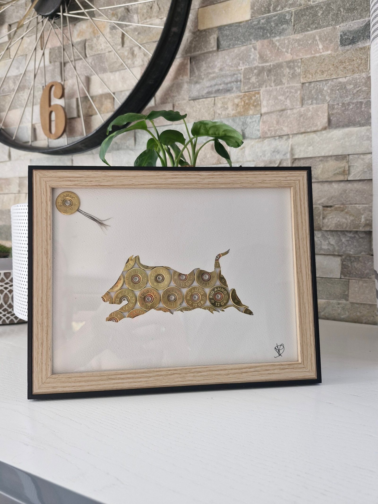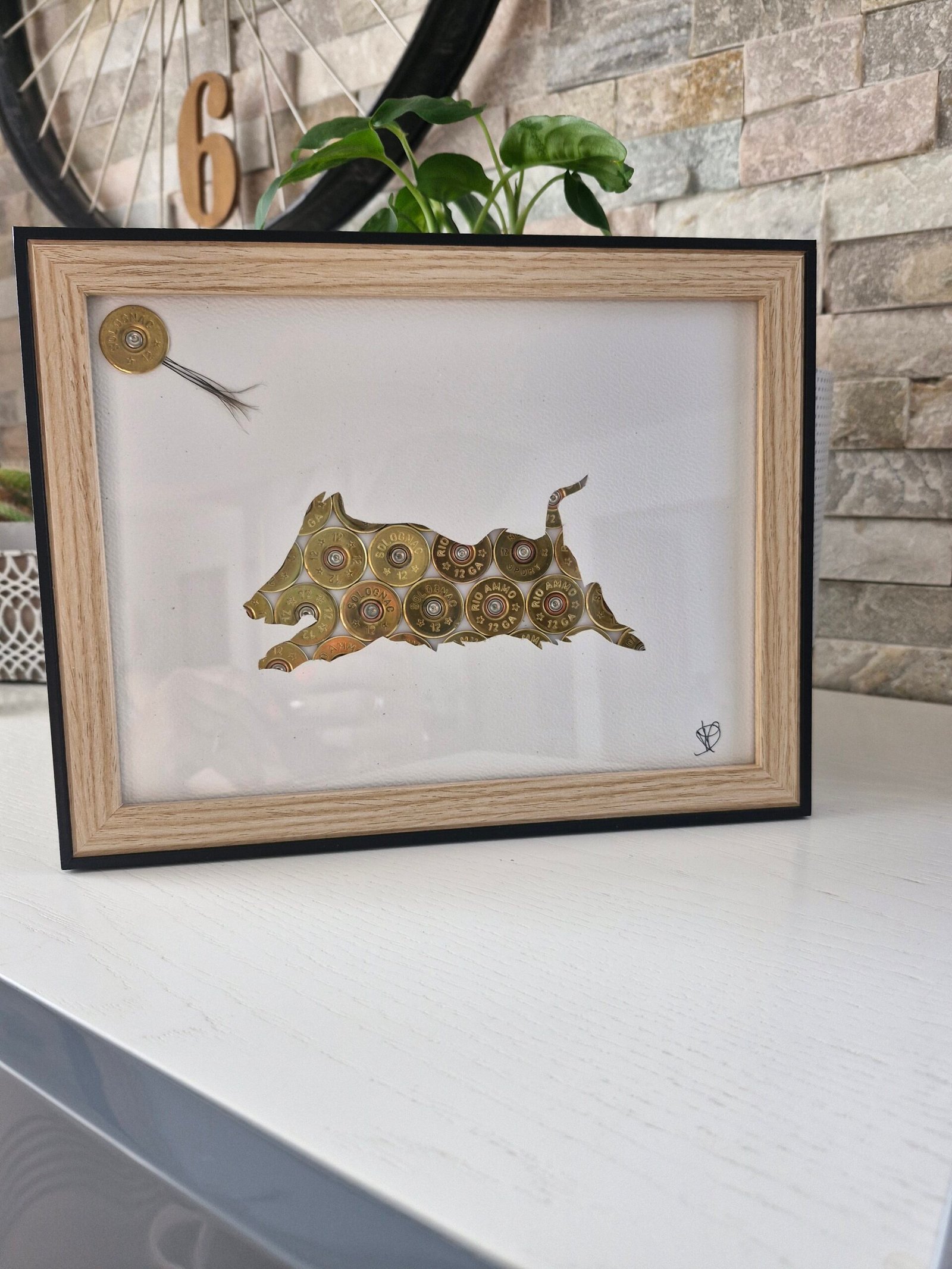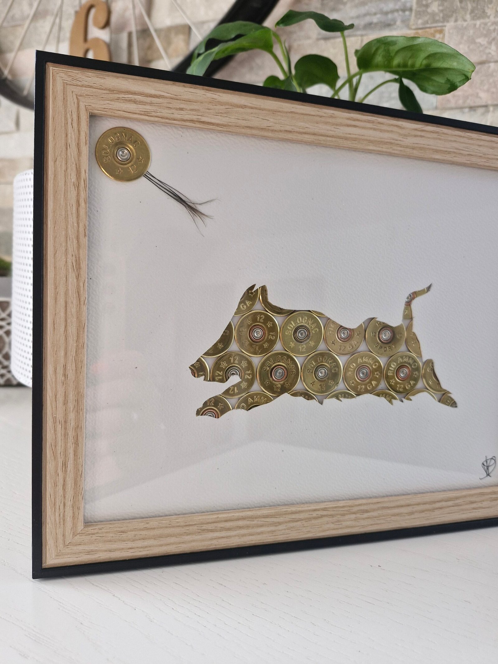 Cadre motive sanglier réalise avec douille de calibre 12 en doré .