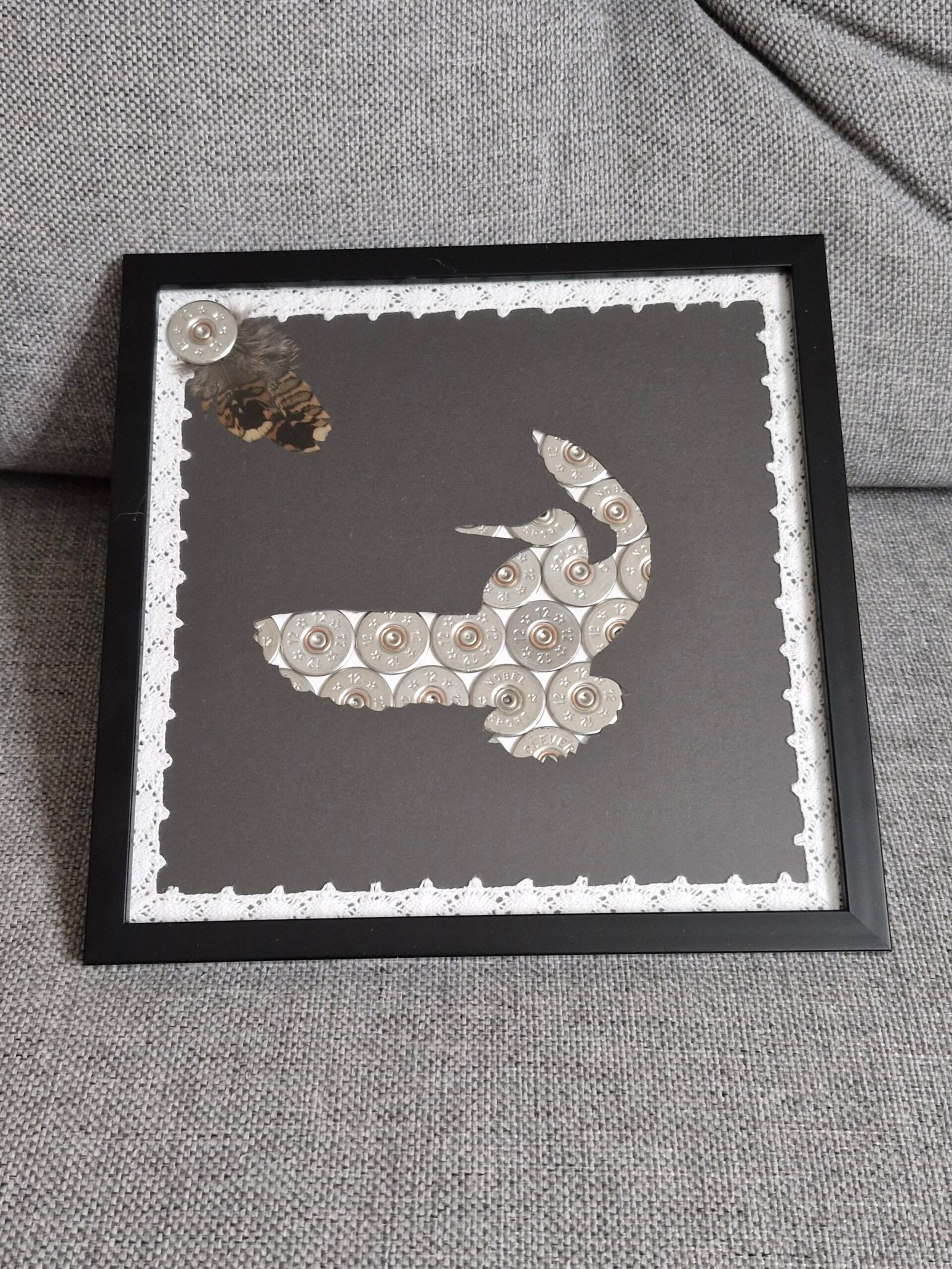 Cadre bécasse fond noir réalise avec de douille de 12 mm couleur argente .