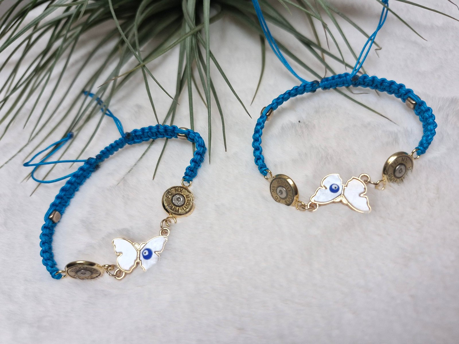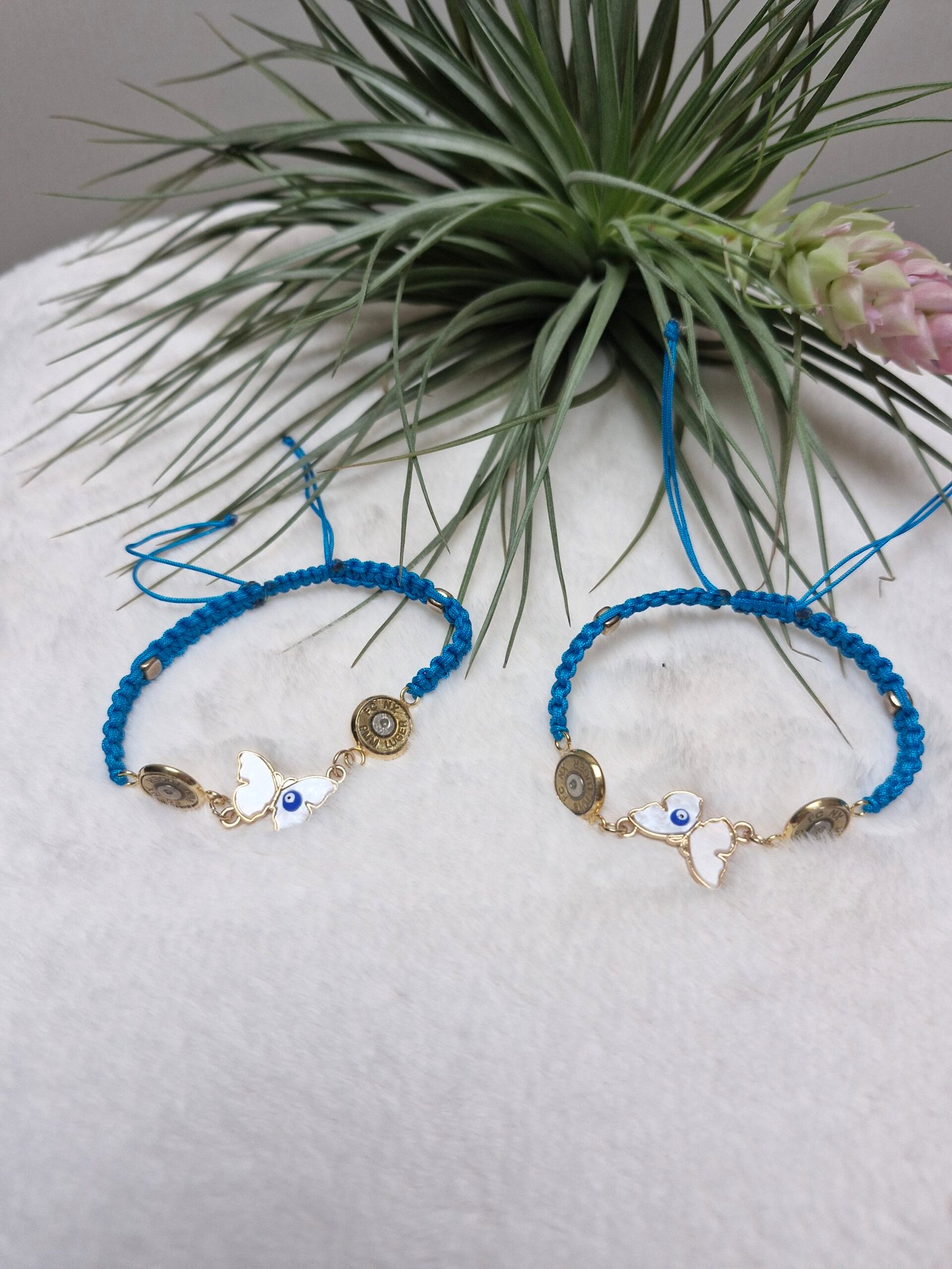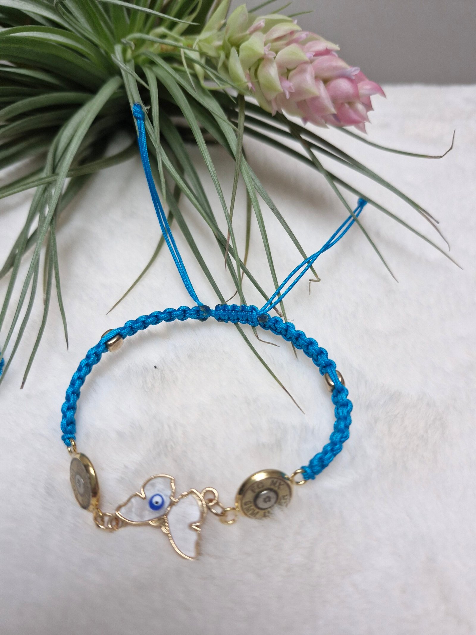 Bracelet femme réglable ,Blue avec un jolie pendent ive  en forme de papillon.